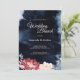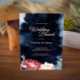 This Starry Night Floral wedding brunch invitation inspires either a midnight summer theme or a dark winter of snow theme, making it a seasonally versatile design. The navy blue, almost black, watercolor with a celestial star or snowflake filled sky, combined with the pop of minimal pink flowers and calligraphy is sure to speak to the magic of your marriage celebration, regardless of the time of year.