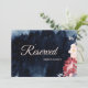 This Starry Night Floral wedding reserved sign inspires either a midnight summer theme or a dark winter of snow theme, making it a seasonally versatile design. The navy blue, almost black, watercolor with a celestial star or snowflake filled sky, combined with the pop of minimal pink flowers and calligraphy is sure to speak to the magic of your marriage celebration, regardless of the time of year.