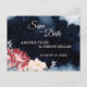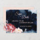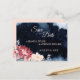 This Starry Night Floral wedding save the date postcard inspires either a midnight summer theme or a dark winter of snow theme, making it a seasonally versatile design. The navy blue, almost black, watercolor with a celestial star or snowflake filled sky, combined with the pop of minimal pink flowers and calligraphy is sure to speak to the magic of your marriage celebration, regardless of the time of year.