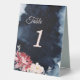 This Starry Night Floral wedding table number tent sign inspires either a midnight summer theme or a dark winter of snow theme, making it a seasonally versatile design. The navy blue, almost black, watercolor with a celestial star or snowflake filled sky, combined with the pop of minimal pink flowers and calligraphy is sure to speak to the magic of your marriage celebration, regardless of the time of year.
