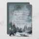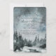 This wedding invitation has a moody watercolor night time sky overlooking a wintery forest. Colours used include forest green, dark navy blue with hints of turquoise. At the top is stylised text that features the bride and groom's names. The invitation details are in deep blue green and are customisable. The back of the invitation has an all over Deep forest green background that coordinates with the colours on the front. A great way to invite guests to your wedding.