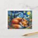 Immerse yourself in the tranquillity of nature with this exquisite postcard, showcasing a red fox serenely sleeping under a mesmerising, star-filled sky reminiscent of Van Gogh's famous 'Starry Night'. Vivid and colourful, the image blends whimsical fantasy with the magical atmosphere of a dreamlike garden. Perfect for fox lovers, kids, or anyone who appreciates cute and artful designs, this postcard is a delightful celebration of wildlife and imagination, making it an enchanting addition to any collection or a thoughtful gesture for someone special