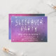 Sleepover party featuring a field of stars with an unique star typeface set on a gradient purple blue background. Perfect for any age girls sleepover birthday party.