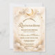 A luminous celestial design featuring delicate crescent moons and scattered constellation stars across a warm parchment background. A refined gold border frames the composition, while elegant script typography creates a graceful focal point worthy of such a meaningful milestone. The soft ivory and champagne tones give the entire piece a timeless, radiant glow. Perfect for a quinceañera celebration that feels romantic, elevated, and touched by starlight.