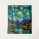 This stunning design uses an impressionist art style to portray a starry night in the Rocky Mountains.
