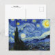 A fine art postcard with Starry Night (1889), a post-Impressionist oil painting by the Dutch artist Vincent van Gogh (1853-1890). A painting depicting the view outside the window from Van Gogh's room at the sanitorium in Saint-Remy-de-Provence, Southern France. Vincent van Gogh's Starry Night is one of the most celebrated paintings in the history of art. Its timeless beauty, rich symbolism, and emotional depth continue to captivate art lovers worldwide with a swirling night sky, stars, and a crescent moon. Order your postcard today and experience the magic of van Gogh's genius in the palm of your hand.