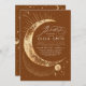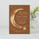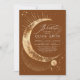 This terracotta bridal shower invitation radiates with a mystical and romantic charm, featuring a metallic crescent moon, sparkling stars, distant constellations, mysterious galaxies, and otherworldly planets. Every detail is designed to embody your luxurious taste and the captivating enchantment of the starlit night sky.