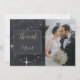 Express your gratitude with celestial elegance using our Starry Night Moon Phases Zodiac Celestial Collection photo wedding thank you card. The front of this card features the words "Thank You" in a pretty gold script font, set against a captivating black and white starry background. A photo of the bride and groom adds a personal touch, making each card a cherished keepsake for your guests.