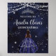 Personalise this lovely starry night quinceañera birthday welcome sign poster with your own wording easily and quickly. Simply click the "Edit Using Design Tools" button to modify the text, wording, font style, font size, and font colour. You can also add or remove text, and move or remove images. The princess girl and crown are moveable, resizable, duplicatable, and removable, allowing you to customise the design to suit your occasion.