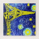 This beautiful design shows the city of Paris France and the Eiffel Tower in a style of Van Gogh's Starry Night painting.