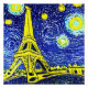 This beautiful design shows the city of Paris France and the Eiffel Tower in a style of Van Gogh's Starry Night painting.