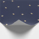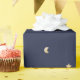 Starry night pattern design features little golden stars and moons on midnight blue sky background.