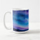 This enchanting watercolor design captures the serene beauty of a cosmic twilight scene. A vibrant sunset peeks over distant mountain silhouettes, painting the sky in a mesmerising palette of purples, blues, and soft oranges. The celestial expanse above is adorned with twinkling stars and swirling nebulae, creating a dreamy, otherworldly atmosphere.