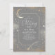 Romantic and mystical grey and gold birthday party invitation featuring a crescent moon, shooting star and galaxies.