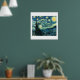 This painting is the most popular of Vincent's works. The Starry Night was completed near the mental asylum of Saint-Remy, a year before Van Gogh's death. He was in many mental hospitals and killed himself at age 37. Van Gogh painted furiously and The Starry Night vibrates with burning yellow while planets spin madly. Even the hills seem to move, yet the cosmic gold fireworks that swirl against the blue sky are somehow restful. All the original colours are reproduced in this copy, including the reds.