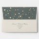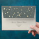 Add a sophisticated celestial touch to your wedding suite with this elegant starry night envelope. The top flap features a minimalist constellation design with shimmering faux gold stars set against a deep grey-green sky, while the front includes a custom return address in timeless calligraphy.