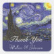 Starry Night wedding favour thank you stickers from bride and groom. Famous impressionism oil painting by Vincent van Gogh.