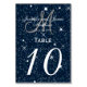 This blue and white monogram wedding table number card with a starry night look makes a great card for any occasion. The background has a blue glitter look, with glowing stars. Customise with your bride and groom names, newly weds last name, monogram initial and wedding date. A unique card that can also be used as a keepsake. Design by Elke Clarke ©. Printed photo effect glitter design. Order one per table with each table number but still receive the bulk discount for total number ordered. Other colours available on request. See more designs at Zazzle.com/monogramgallery. This signature original design, by Elke Clarke, popular since 2007, is now updated by adding a starry night effect with glitter background photo effect.