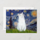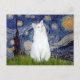 Starry Night - White cat Postcard