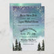 Starry Northern Lights, Wintery watercolor mountain wedding invitation. Pretty blend of purple, blue and green watercolor sky with winter mountain pine trees.