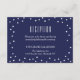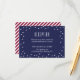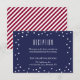 Navy blue reception card in featuring a sprinkle of stars and a striped back in white and crimson.