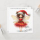 Celebrate the season with a whimsical Christmas design featuring a barefoot fairy dressed in a red holiday dress adorned with glowing yellow lights. Her delicate translucent wings and holly-topped Santa hat add a touch of festive magic, while the small wreath she holds brings warmth and tradition to the scene. Set against a clean white background, the handwritten “MERRY CHRISTMAS” adds cheerful charm. On the reverse side, the greeting “Strung with sparkle and standing tall—may your Christmas shine brightest of all!” is included with the sender’s name, offering a heartfelt and personal message perfect for sharing seasonal joy. Ideal for those who love imaginative holiday art and fairy-inspired wonder.