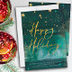 Starry Winter Night Happy Holidays Green Gold Holiday Card
