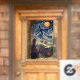 Halloween Window Cling with a Sparkling Starry Witch flying through the night on her broomstick.