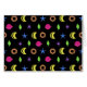 A space and nature pattern that has bright colours with a pop placed on a black background.