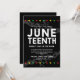 Celebrate the Juneteenth holiday! These invitations feature a minimal yet meaningful Juneteenth-themed design. In the background are transparent broken chains to symbolise freedom and the real purpose of the Juneteenth Holiday. On the top and bottom is a line of stars representative of the United States. All elements of this item are unlocked and customisable including the solid black colour of the background. With this in mind, have fun being creative and making it your own.