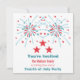 Bold and brightly patriotic Stars and Fireworks Invite featuring a pair of multicolored firework graphics and tiny red stars. This simple yet charming Independence Day invitation is the perfect choice for the July 4th gathering you will be hosting this year! Easy to customise, simply add the details of your fun party in the fields provided.