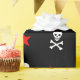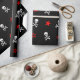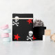 Fun wrapping paper with red stars, skulls and crossbones.