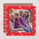 This cute holiday photo card is designed with stars on the front and stripes on the back. The front features a square cutout for a family photo. The back features a square block for entering your Christmas greetings. This is a template and must be personalised with your information or it will be printed with the info show in product photos.