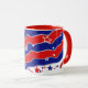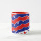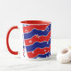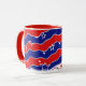 A red and blue patriotic design with wavy lines and stars. Personalise with monogram in red script.