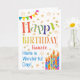 A colourful, text-based Birthday Card for a Fiancée, with Polka Dot Bunting, bright, striped birthday cake candles and sprinkled with gold-effect stars. The patterned text says, 'Happy Birthday' and there is also 'Have a wonderful day!' in blue lettering (NB the gold effect stars and outlines will be as seen and not be printed in metallic ink.)