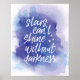 Stars can't shine without darkness hand lettered typography poster print features modern hand lettered typography in blue and purple watercolor, an inspiring quote for the kids room or the living room.