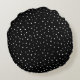 Modern round pillow featuring white modern calligraphy and polka dots pattern. Similar items and other colours are available.