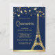 Stars Confetti Gold Foil Eiffel Tower Quinceanera Invitation