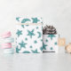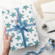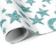 Stars Moon Sparkly Teal Aqua Blue White Wrapping Paper
