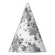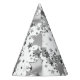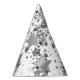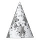 This party hat is shown in a white colour with a print of fun silver stars all over it.