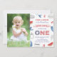 Patriotic Stars and Stripes First Birthday Photo Card Invitations.