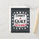 "Start A Quilt Today" is a cute text design featuring a white accent shape surrounded by cute white polka dots.