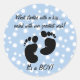 Cute blue bubbles background and baby footprints maternity design. Text says WHAT STARTED WITH A KISS... ENDED WITH OUR GREATEST WISH. Customisable text to personalise it just the way you want it. On greeting cards, invitations, mugs, stickers, postage stamps, T-shirts and more! PinkInkArt original!