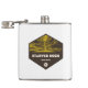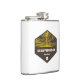 The flask itself is fine. It’s a cheap flask, obviously bought in bulk, however am prepared to overlook that. Given that it is a personalized item, I would have liked to have seen gift boxing instead of the generic packaging. Terrible printing, and/or quality. It’s a cheap, tacky vinyl. It is not cut straight and is also applied in a way that it is overhanging the bottom, causing the glue to catch on items and it will eventually roll and tear, damaging the wrap.