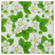 I painted strawberry leaves, blossoms and fruit with watercolors, then scanned the painting and made a pattern from it