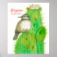 A poster decorated with a fluffy cactus wren perched on a saguaro cactus in bloom with white blossoms drawn with sepia ink and painted with watercolor. Inspired by the state bird and state flower of Arizona. You can edit or remove the text to fit your needs.