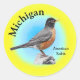 an image of an American Robin the state bird of Michigan with the state name and bird name