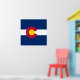 This design features the flag of the state of Colorado, which is an area of the Western United States that contains most of the southern Rocky Mountains as well as the northeastern part of the Colorado Plateau and the western edge of the Great Plains. It is sometimes known as the Centennial State, and its motto is "nil sine numine", which means "nothing without providence". The flag was designed by Andrew Carlisle Carson in 1911. The blue of the flag is intended to represent the clear skies, the gold stands for the bright sunshine that the state enjoys, the white represents the snow-capped mountains and the red represents the ruddy earth. The letter C on the flag, of course, stands for Colorado. The state capital of Colorado is Denver, which is also the state's largest city. Other major cities and towns in Colorado include Colorado Springs, Aurora, Fort Collins, Lakewood, Thornton, Arvada, Westminster, Pueblo, Centennial, Boulder, Greeley, Longmont, Loveland and Broomfield.