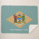 This design features the state flag of Delaware, which is a state in the Mid-Atlantic region of the United States of America. Delaware borders Maryland to its south and west; Pennsylvania to its north; and New Jersey and the Atlantic Ocean to its east. The state takes its name from the nearby Delaware River. The city of Dover is the state capital of Delaware. Other major cities and towns in the state of Delaware include Wilmington, Newark, Middletown, Smyrna, Milford, Seaford, Georgetown, Millsboro, Elsmere, New Castle, Clayton, Laurel, Harrington, Camden and Lewes. A resident of Delaware is known as a Delawarean.