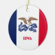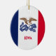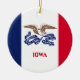 This design features the state flag of Iowa, which is a state in the Midwestern United States, bordered by the Mississippi River to the east and the Missouri River & Big Sioux River to the west. It has borders with six other states: Wisconsin to the northeast, Illinois to the east and southeast, Missouri to the south, Nebraska to the west, South Dakota to the northwest and Minnesota to the north. The state is sometimes known as the "Hawkeye State". The state flag of Iowa is a vertical tricolor of blue, white, and red, reflecting the U.S. state of Iowa's history as part of the French Louisiana Territory. There is an image of a bald eagle holding a long ribbon that reads, "Our liberties we prize and our rights we will maintain", derived from the Seal of Iowa. The capital city of Iowa is Des Moines. Other major cities in Iowa include Cedar Rapids, Davenport, Sioux City, Iowa City, Ankeny, Waterloo, Ames, Council Bluffs, Dubuque, Urbandale, Cedar Falls, Marion and Bettendorf.